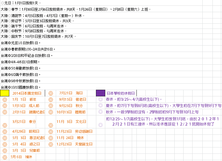 日本東京 ◎2014年度日本大陸台灣行事曆◎自助旅行 5天4夜 事前準備分享-1
