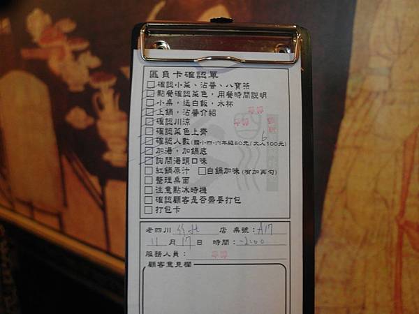 服務生都是訓練有素的~加上他們的負責卡都可以體驗到老四川的用心耶