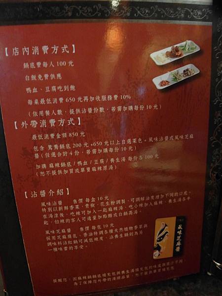 收10%服務費唷,鍋底每人NT100,每桌最低消費650元+10%